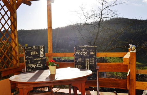 From the spacious balcony you have a wide view of the surrounding valley, even to the Westerwald. An ideal place for sunbathing and relaxing!