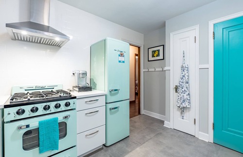 Based on the information received from our partner, the Modern 50's Retro Charm has not specified they are wheelchair accessible. Likewise, there is not an elevator specified as being available at the property. Specific accessibility details may be addressed in the property details section of this page.