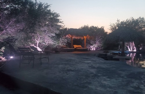 Huge Beach Entry Pool with Cave, Tanning Ledge, Swim up Bar, Hot Tub, Steam Room, Gym, Camp Fire, BBQ Grill, Palapas, Darts, Ping Pong, Corn Hole, Fire Pits, Fire Tables, more.