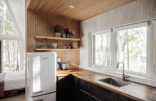 Nestled in 12 acres of towering Norwegian Pines, Oda Hus gives you the ultimate privacy and seclusion and is a destination all of its own. Sitting on a peninsula of Barrow Lake, conveniently located across the street Woman Lake. Floor to ceiling windows throughout, letting in all the light and providing all the views. Go for a swim off the dock, take the kayaks for a spin, and cozy up to a fire in front of the cabin at dusk. The perfect blend of modern luxury and nature.