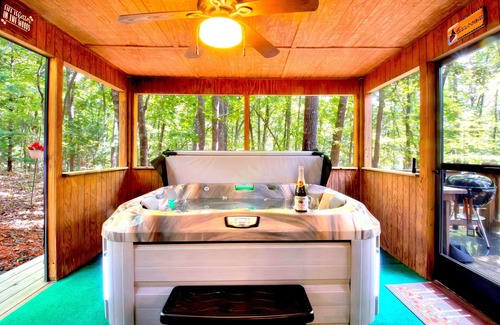 Imagine curling up next to the fire or enjoying a glass of wine at Hidden Retreats' indoor hot tub. You'll sleep perfectly comfortable close to nature and natural parks. With a fully equipped kitchen you'll be able to cook great meals any time of the day. Finally, end your days outside the cabin at the firepit where you'll be able to see the gorgeous stars of northern Georgia almost every night.
