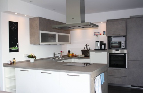 Dishwasher, oven, microwave, fully automatic coffee machine, fridge-freezer, induction hobs, fully equipped with dishes, glasses and cutlery