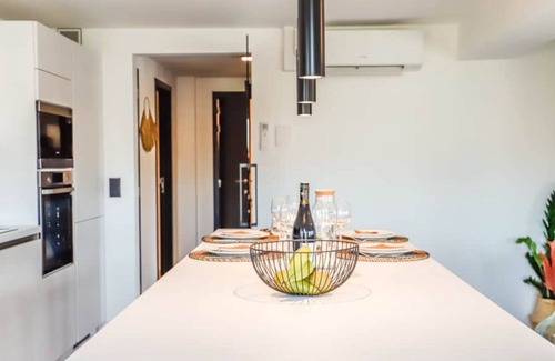 Stay in this modern apartment blessed with a location in the heart of Hotton. Tastefully furnished with typical Ardennes decoration, it can comfortably accommodate a family. Clara's Place is located in the heart of Hotton, with a direct view of the Ourthe and the island of Oneux, but also close to the church and many restaurants. The apartment is located just above the Brasserie 'Le Jacquemart'; an institute in Hotton. Ile de l'Oneux has a large park and playground for children, making it a great place for a family holiday. Beautiful walking routes and nice places such as Durbuy, La Roche-en-Ardenne, Marche-en-Famenne, and Erezée are a short distance from the residence. The apartment has a modern open kitchen, comfortable bedrooms, and a bathroom with a shower. Air conditioning provides cooling on hot summer days and parking is available at the house.