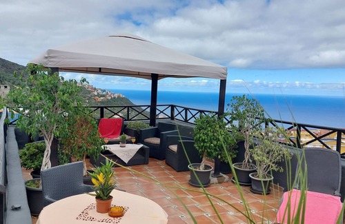 Modern living in a rustic ambience. Our vacation home on the top floor offers a wonderful view of the Atlantic. The modern-style holiday home has a spacious living room, a well-equipped kitchen directly connected to the living room, a bedroom with a double bed (150 cm) and a bathroom with toilet, sink, bidet and two-person seat shower. The flat screen TV has satellite reception with around 450 international channels - including BBC World and CNN - as well as local reception with common Spanish TV channels by switching on the remote control (international movies on most of the Spanish TV channels can be switched to the original language). You can also ask for free Netflix. Of course, the large communal roof-terrace can also be used. Our house got glass fibre internet connection and at all of the accommodations as well as at the roof-terrace there is very good working wifi-connection.