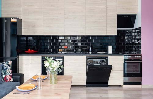 This stylishly decorated apartment is located on the 1st floor of a modern residential complex located in Poznan's Piatkowo district, at 20 Mateckiego St. Its peaceful location in close proximity to the beautiful walking areas in Morasko (2 km) makes the apartment an excellent choice for guests wishing to relax in peace and quiet after a busy day of sightseeing in the city. The location near the loop of the Sobieski housing estate (1.5 km), or the first stop of the fast streetcar line Pestka, makes access to the very center of Poznań simple and trouble-free. In as little as 12 minutes you will reach the Kaponiera Roundabout, from where a walk through Święty Marcin Street, hooking up with Wolności Square, you will reach the Old Market Square itself with the well-known to all Poznan goats on the Town Hall. Numerous bus stops provide efficient communication with other parts of the city, and a developed retail and service infrastructure will fully meet all the daily needs of guests. Just 3 km from the apartment there are also two shopping malls - Galeria Pestka and Poznañ Plaza with a cinema and numerous stores of well-known brands. It takes 20 minutes by car or cab to reach the Poznan Central Station.