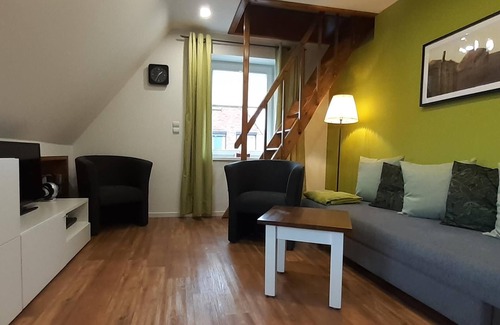 Built in 2014, equipped with fresh colors and modern furnishings, this apartment offers space for 4 people a relaxing holiday with. Children are always welcome. A children's equipment, consisting of travel cot, bedding, high chair and more, creates space in the trunk for the rest of luggage. Internet, satellite TV with foreign channels, DVD player and a fully equipped kitchen are available. Two bedrooms, one of them as duplex bedrooms, a bathroom with window and a cozy living room waiting for the population! You can specify when booking whether you prefer a double bed or twin beds. Bed linen and towels are included, as well as toilet paper, kitchen roll, handkerchiefs, and more. You really need to bring is something to wear.