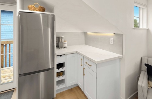 The space includes modern appliances, a coffee bar, and everything you need to prepare simple meals or enjoy takeout in comfort. Whether you're having a quiet breakfast or winding down with dinner after a day of exploring, it’s designed to make your stay easy and enjoyable.