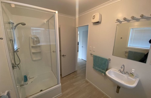 Modern house at Castle Point Beach above the Tsunami line, Queen bed, Two single bunks and a pull out double couch on ground level with bathroom and a Queen bed with squabs on ground up stairs with ensuite bathroom. Good size deck,