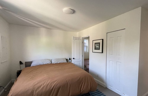 - Primary bedroom with high-quality king size mattress, closet and half bathroom