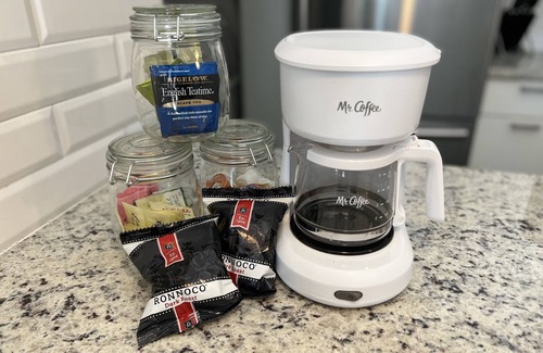 KITCHEN - Fully equipped kitchen - all appliances + granite countertop - from soup to gourmet. Pots, pans, baking pans, blender, utensils, crock pot, top of the line cutlery, glassware and dishes. Washer and dryer. luxury vinyl floors, new bathroom tile and glass shower.