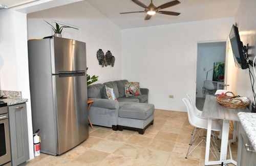La Suite Isleña is a modern 1 bedroom suite in a large enclosed yard with many island fruit trees like avocado, plantain, and Moringa. The apartment has a comfortable seating area and dedicated workspace. It is a 5 min drive to the nearest beach, and 10 min to good restaurants and the airport. Nestled in a quiet neighborhood, this fully furnished and fully stocked kitchen with high-speed WiFi is perfect for your island getaway. Regular room service is available if requested.