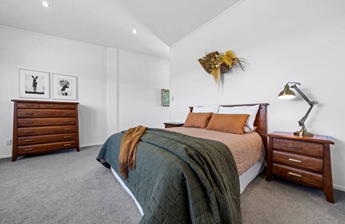 The master bedroom is spacious and beautifully decorated, with a comfortable king-size bed, luxurious quality linen and plenty of natural light. The modern ensuite bathroom features a large shower with dual rain shower head, high-quality toiletries and linen, and double vanity unit with plenty of storage. Whether you're looking for a romantic getaway or a solo escape, this master suite is the perfect place to rest, rejuvenate, and escape the stresses of everyday life.