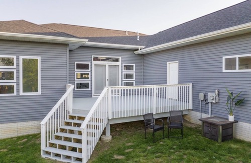 This is a bright, roomy and modern style house. Set in a quiet Center Point neighborhood. Just off of interstate 380, with a 30 minute drive to Cedar Rapids, Vinton, Shellsberg, Palo or Independence, & 45 minutes to Waterloo/Cedar Falls. With 5 bedrooms, 3 bathrooms and 2 living rooms, pool table, full kitchen, backyard, deck and fenced in yard. Each bedroom has a different type of mattress, this allows guests to choose the room they feel the bed matches their sleeping preferences. We have a meeting room that can be used for sewing, (including a cutting table, design wall, & pressing station) scrap booking, or crafting with friends or family. Also good for small retreats or study groups. Backyard deck has cushioned wicker set, and grill for outdoor entertaining. There is also a hi chair, pack-n-play, and book, toy & game closet for use. We have a NO animals allowed policy, and a NO smoking/vaping inside buildings policy. Contractor reservations need prior approval with host.