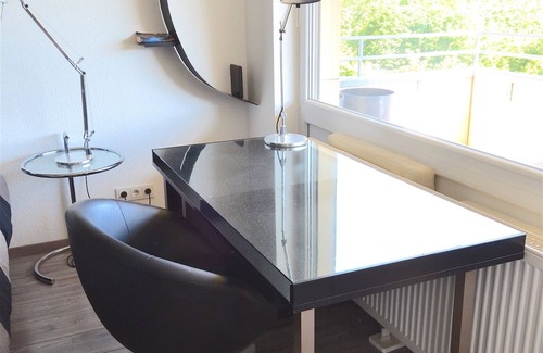 Spacious and modern furnished Studio. Large balcony facing south with nice view to the Fasanerie Park. Excellent infrastructure and public transport connections (banks, grocer's shops, laundry, post office, pharmacy, restaurants and tram line 4 & 5 and bus line U within 200m radius). Darmstadt city center reachable in 10min and Darmstadt main train station in 20min. WLAN and underground parking are included.