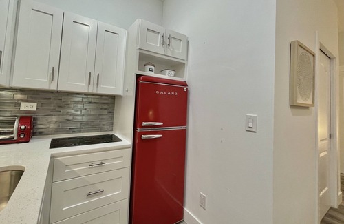Modern and comfortable efficiency with a private entrance, 1 free parking space, equipped kitchen, 1 queen bed & 1 futon.