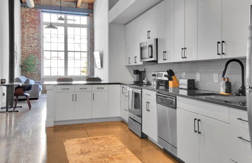 The apartment is your private haven, featuring exposed, industrial vibes and contemporary finishes that elevate the overall aesthetic. Every detail is crafted to ensure a pleasant and luxurious stay, making this the perfect place to call home during your time with us.