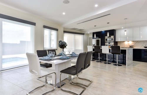 This attractive and modern villa combines exclusive architecture with every modern convenience. Hot water, great WiFi, Alexa, Sound System, Smart TVs, a Safe, large gas grill, Airconditioning in all rooms and a modern kitchen!