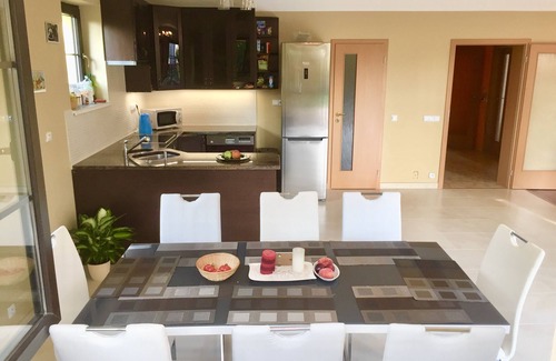 Spacious and modern 5-bedroom villa with private garden, seasonal pool, and secure parking. Ideal for families and groups, just 20 minutes from Prague in a peaceful village near river and nature