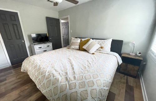 This updated farmhouse has it all! Fully stocked kitchen, on site laundry, outdoor gathering with fire pit, newly renovated kitchen and bath, and extra large game room separate from house. The game room has pool table, arcade games, karaoke machine, and extra large projection that even shows clear in daylight! Our home is in the perfect location within 15 minutes of Smith Wills stadium (home of JSU Tigers), outlet mall, Mississippi Braves, Brandon Amphitheater, golf, JAN airport, Tesla, & more