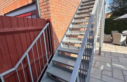 The room is situated above the double garage of the property and is accessed through the Garden Gate and then using the stairs to the front door of the room. Not suitable for infants or pets.