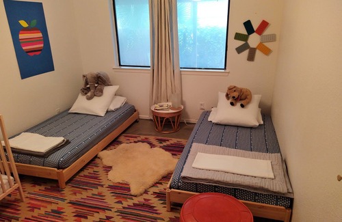 We have an easy to care for, Swedish design inspired, home located about 25 minutes north/west of downtown. Reference Guero's Taco shop as your downtown destination. Apple HQ and the new (2024) Dell Children's Hospital are a five minute drive from our home. We are located in an older neighborhood. We are loved for our old-growth live oaks. Our house has a woodsy feel.