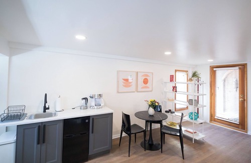 Formerly an artist's studio, the space has been gut renovated with the most modern finishes. Light filled, with a kitchenette, top of the line workstation, and sparkling clean bathroom- it's the perfect home base for your visit!