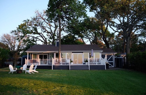 Stunning 3 bedroom, 2 bathroom, fully renovated cottage with open concept living, waterfront with dock and the prettiest open-water views on Cedar Creek Lake. This picturesque getaway is one hour from Dallas.