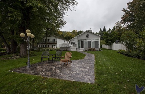 The level yard and large back deck open to 90 feet of direct access to Honeoye Lake, and the attached deck has plenty of seating and is fenced & gated, which is great for our younger guests. The large yard has lots of space for games, and a stamped concrete walkway from the house leads to a patio not far from a wood-burning fire pit perfect for night-time relaxation or marshmallow roasting.