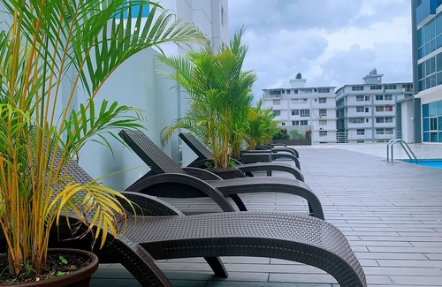 One of the main highlights of this property is the amazing huge lap pool, perfect for swimming enthusiasts or those seeking a refreshing dip. Lounge by the poolside while gazing at the panoramic views of the city - a great way to unwind and enjoy your vacation.