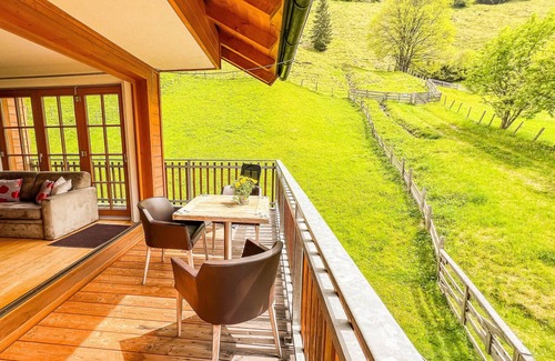 From the approximately 12.2 m² south-facing balcony you can enjoy a fantastic, unobstructed view of both the impressive panorama of the Hohe Tauern and the valley run of the Rauriser Hochalmbahnen.