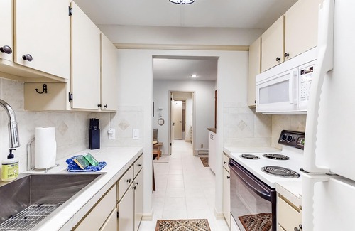 Indulge in a modern mountain getaway today and call this ideally-located condo home for your next vacation to Ketchum. From the stylish wood paneling to the contemporary art throughout, you won't have to sacrifice any comforts of home on this vacation. Before walking over to the lifts, bring a morning cup of coffee out to the private balcony and breathe in that crisp mountain air that never disappoints. When you build up an appetite, the fully equipped kitchen has everything needed to whip up anything from quick snacks for a movie night to a gourmet meal that everyone can gather for at the dining table. The home's high-speed internet and free WiFi make it quick and easy for remote workers and students to complete their projects on time.