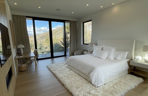 Brand new architectural house 5 minutes drive to downtown Jackson with 4 Suites with on suite bathrooms, Indoor Lap Pool, Gym with TechnoGym equipment, 2 fire pits, breathtaking views of the Teton Mountain Range. Indoor heated swimming pool, massage room, steam room, large hot tub, fully equipped gym, fully kitchen with everything. Dining table sits 12 plus breakfast table and bar seating.
