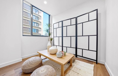 Welcome to our modem oasis in Waterloo! This 1BR+study unit offers modern comfort and convenience. Relax in the light-filled living area, sleep soundly in the queen-sized bed, or relax in tea room. The fully equipped kitchen and stylish bathroom cater to your needs. Amenities include high-speed Wi-Fi, a Smart TV, and a dedicated parking space. Explore nearby cafes and shops, with easy access to public transport. Your hosts are here to ensure a memorable stay in this trendy Sydney locale!