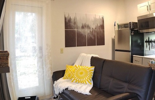 The 320 sq ft apartment was professionally constructed in 2022, and is attached to our family home. The private entrance is on the side of the house, and there is a glass door to the backyard for easy pet access. While the backyard belongs to the main house, you are more than welcome to use it. We just ask that you please keep an eye on any pets as there may be other people, pets, or even transient wild animals (bears) back there.