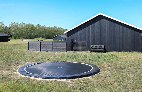Modern holiday home with whirlpool and sauna located on a large natural plot on the edge of the holiday home area by Grønhøj Strand, which has one of Northern Europe's very best bathing beaches, which stretches for miles with fine, white sand and high dunes. The cottage was built in 2019, bright and spacious, top-insulated and extremely well-appointed with activity rooms, modern furniture and decoration with a cozy atmosphere. The large windows, the wood stove and the high insulation mean that you can expect a lower energy consumption in the house. The living room is in open connection with the well-equipped kitchen with i.a. wine cooler. There is a bathroom with a 2-person whirlpool and access to the sauna with music and a guest toilet with shower. There are three bedrooms with closet space. Lovely terrace where you will find shelter. Tool shed for bicycles etc. The plot is a flat natural plot, which can be used for play with the children and fun around the grill. There is a trampoline on the plot that can be used at your own risk / insurance.