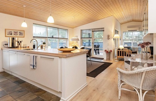 Modern holiday cottage with whirlpool located at Grønhøj Strand. Tasteful, personal furnishings and large, bright rooms. The house was renovated in 2014 and has open concept kitchen and living room, 3 bedrooms, mezzanine and a bathroom. The furnishings and layout is typical Danish cottage style with a large living area which is very bright due to the large window sections. From the living room you have access to the enclosed south/west-faced terrace. The open plot with lawn has swings, sandpit and slide as well as a football goal.A refundable deposit might be charged closer to your check-in date. The security deposit ensures a smooth stay and covers any additional services or consumption charges.This deposit covers utilities consumed during your stay and any additional services that may be taken.The final amount will be adjusted based on actual meter readings, actual usage of extra services, and any remaining balance will be refunded within 21 days after checkout.This deposit simply acts as a prepayment for charges that you would anyways pay for, ensuring a seamless stay and check-out experience.