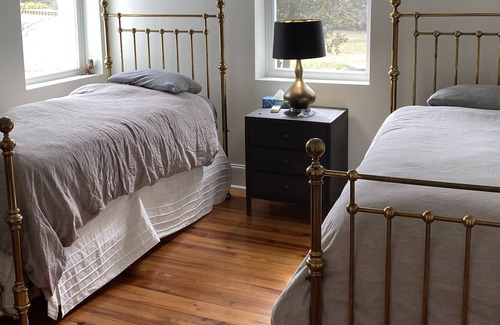 Our serene colonial waterfront 5000 sq ft sanctuary holds the shore to its heart with water views from every floor and window in this 6 bedroom home.Renovated in 2018, this property sports a 200ft private pier, private beac. The beautiful designer carriage house is a separate residence approx 150 feet for the main house, also for rent. We have water vessels and fishing equipment, crab traps and bbqs .