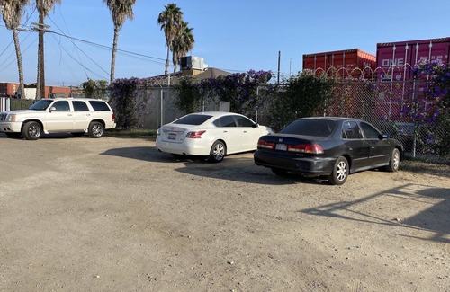 Modern studio with small kitchen, it's the end unit of a one story apartment building. The bathroom has been completely remodeled for January 2019. There is parking in the gated lot, right in front of, or very near, the front door. Some pets accepted upon request for modest pet rent, please ask. It has a full bed with a pull-out twin trundle, please see the picture. This sleeps a third person. There is a container yard next door (see photo), and the rest of the neighborhood is residential (see street picture).