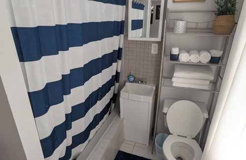 Modern studio in central Oswego, just an 8-minute walk to Lake Ontario. Features a comfortable queen bed, private bath, Wi-Fi, smart TV, and kitchenette. Ideal for solo travelers or couples. Enjoy self check-in, a quiet residential setting, and easy access to downtown shops, dining, and waterfront attractions.