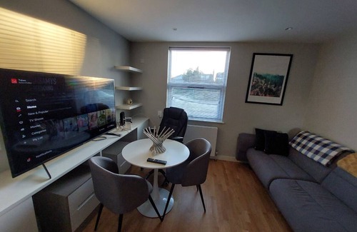 Welcome to our modern studio apartment, perfectly situated in the vibrant and diverse neighborhood of Palmers Green, located in the N13 4RW area of London. This thoughtfully designed space offers a blend of contemporary style and comfort, making it an ideal retreat for solo travelers or couples looking to explore the city.
