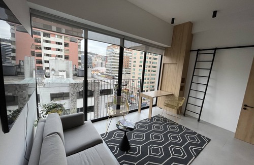 This contemporary studio is located in one of the most vibrant spots in Quito, ideal for those who want to be close to everything the city has to offer. The building stands out for its elegant design and strategic location in the financial and commercial area of Quito.