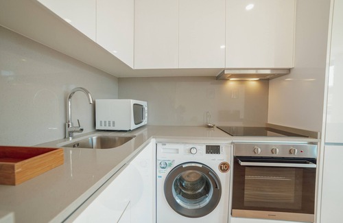 The apartment is completely equipped with all necessary kitchen products, hairdryer, iron, refrigerator, freezer, microwave, vacuum cleaner, washing machine.