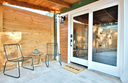 Charming studio nestled in the heart of Tech Terrace! Designed for guest comfort and conveniently located. Walk to J&B Coffee, Capital Pizza & more. Enjoy a full stocked kitchenette, cooking/eating utensils, & Keurig w/complimentary coffee. Stream your favorite shows on the 50” RokuTV (Netflix, Amazon, Hulu). Enjoy a seamless self check-in with unique access code!