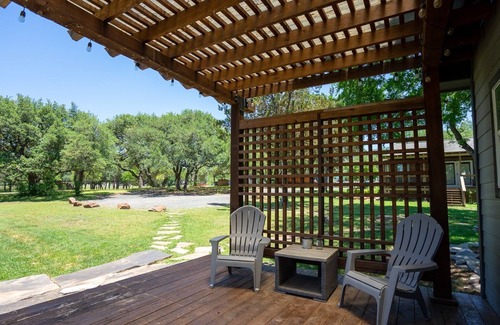 Welcome to the beautiful Hill Country! 'Emilia Hideaway' is a modern tiny home, open-concept studio with a loft. On a two-acre fenced lot behind the owners main house. On the NorthEast side of Canyon Lake, it's ideally located less than a mile between the lake and river. In the heart of the hill country yet an hour away from Austin, San Antonio, and Fredericksburg. Around the corner from the dam and spillway with gorgeous views, hiking, tubing, and fishing. There is something for everyone!