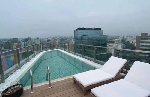 Modern, bright, and spacious 2-story apartment (floors 14-15) with a fully equipped kitchen, laundry, and separate workspace ideal for remote work/biz. Enjoy great views to the city and partial ocean views during your stay. 1-parking space included. Free access to common areas (roof-top pool, gym, rec room). Located in the popular tourist area of Miraflores; walking distance to markets, malls, trendy cafés, entertainment, and high-rated eateries; next door to the bohemian district of Barranco.