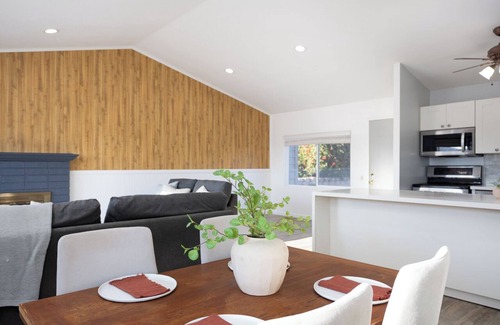 Welcome to your private Santee retreat! This updated 2BR/1BA home features vaulted ceilings, luxury vinyl plank flooring, and a fully equipped kitchen with quartz countertops, upgraded cabinets, and stainless steel appliances. Enjoy a bright, open-concept layout perfect for relaxing or working remotely. Both bedrooms offer cozy comfort and ample storage. Step outside to a peaceful yard with green grass and blooming flowers—ideal for morning coffee or evening unwinding. Additional amenities include fast Wi-Fi, A/C, in-unit washer/dryer, and a private 2-car garage and a 50 inch smart TV. Enjoy quick stroll to Walker Preserve where you can hike along the scenic San Diego river! Located in a quiet neighborhood with easy access to parks, shopping, and freeways—your perfect San Diego stay starts here!