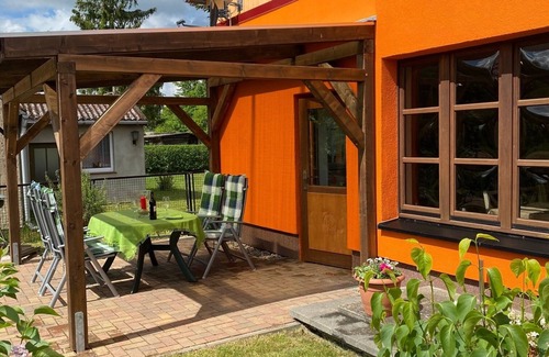 Modern vacation apartment 250 m to the lake, south-facing terrace and barbecue, fully fenced. | Condo in Mirow Ot.Fleeth