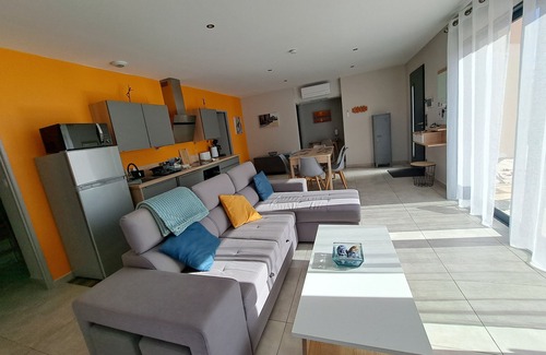 Modern vacation villa Drome jacuzzi/spa 5 places/equipped/air-conditioned is located in Chatuzange-le-Goubet. Modern vacation villa Drome jacuzzi/spa 5 places/equipped/air-conditioned provides accommodation, featuring Sports/Activities, Fireplace/Heating, Child Friendly, among other amenities. This Villa features Sports/Activities, Fireplace/Heating, Child Friendly, to make your stay a comfortable one.