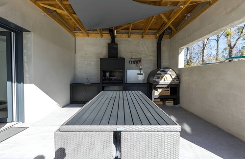 This luxurious escape just minutes from Le Mans is perfect for families, friends, or business travelers. Set in a peaceful neighborhood, the modern villa accommodates up to 10 guests across 5 elegant bedrooms, including 2 suites. With a spacious living area, 3 stylish bathrooms, and a fully equipped kitchen, it’s designed for both comfort and convenience. Step outside to enjoy a private in-ground pool, a large fenced garden, and a summer kitchen complete with a pizza oven and barbecue—ideal for relaxed outdoor dining. Children can enjoy their own dedicated play area, while adults unwind on sun loungers or gather in the outdoor lounge. Premium amenities like air conditioning, Wi-Fi, satellite TV, and hotel-quality linens ensure a seamless stay. Managed by Rêve au Mans, the villa includes 24/7 concierge services such as breakfast delivery, private drivers, in-villa massages, and more. Whether you're attending an event at the 24H circuit or seeking a tranquil retreat, this property blends elegance, privacy, and personalized service for an unforgettable experience.