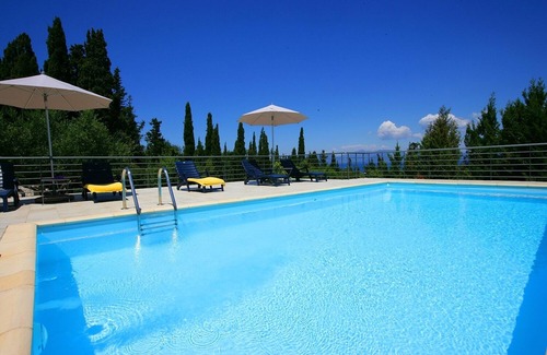 A well appointed 3 bedroom 3 bathroom villa, the 2 main rooms both with king size beds,- one of which can be converted to an additional twin room, both have modern en suite shower rooms, the third bedroom is a twin room also with a modern en suite shower room. All bedrooms are air conditioned. The property has a large private pool and outstanding views over the Ionian sea. .Within easy walking distance of restaurants and bars in the harbour of Fiscardo this villa is perfectly situated for those guests that want to give up the car for a few days.